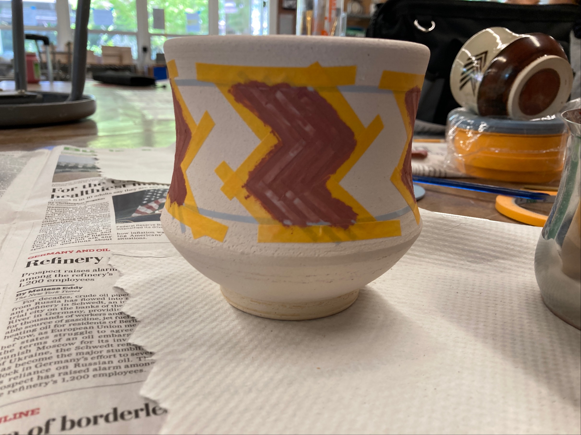 Iron Red glaze Dipped Outside (And brushed)