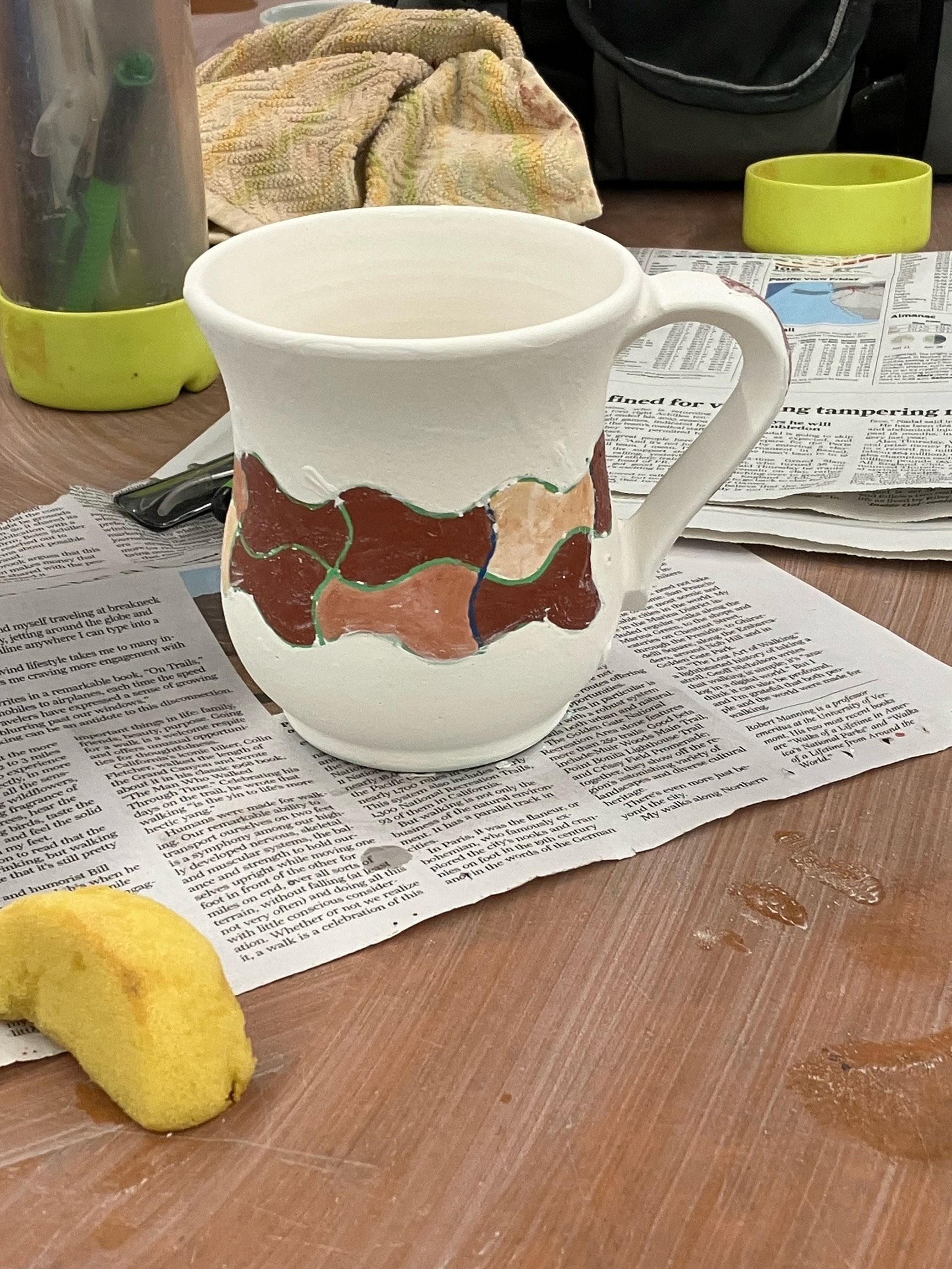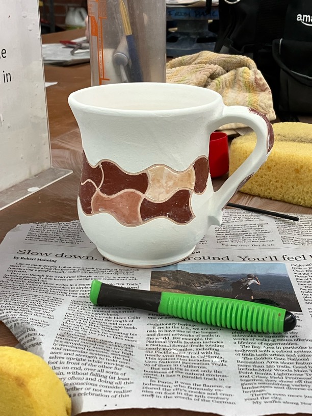 Yellow Salt glaze Outside (Applicator, fishes)