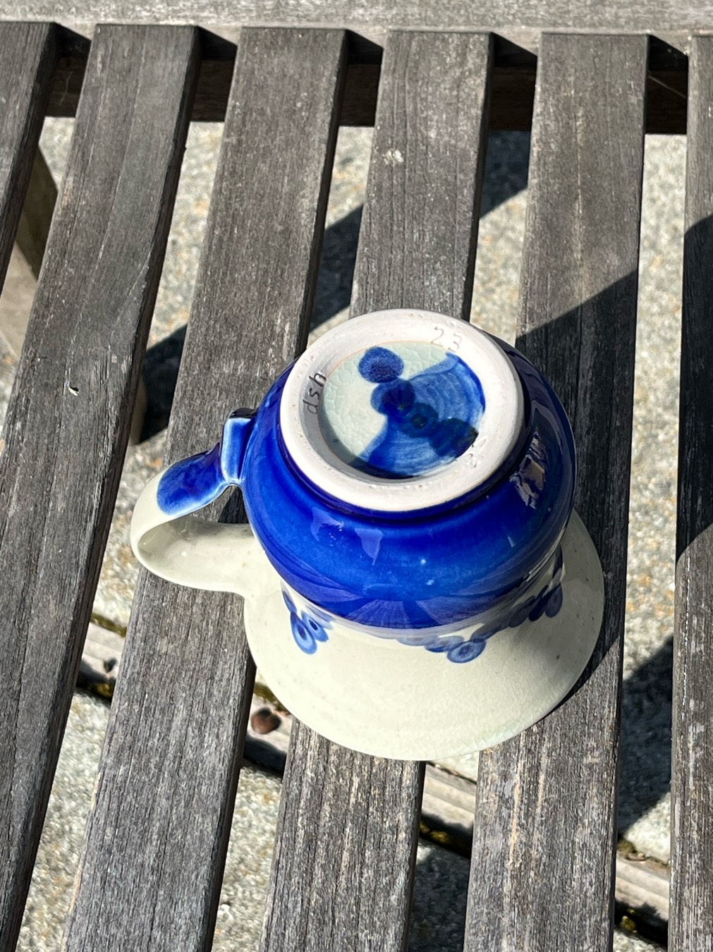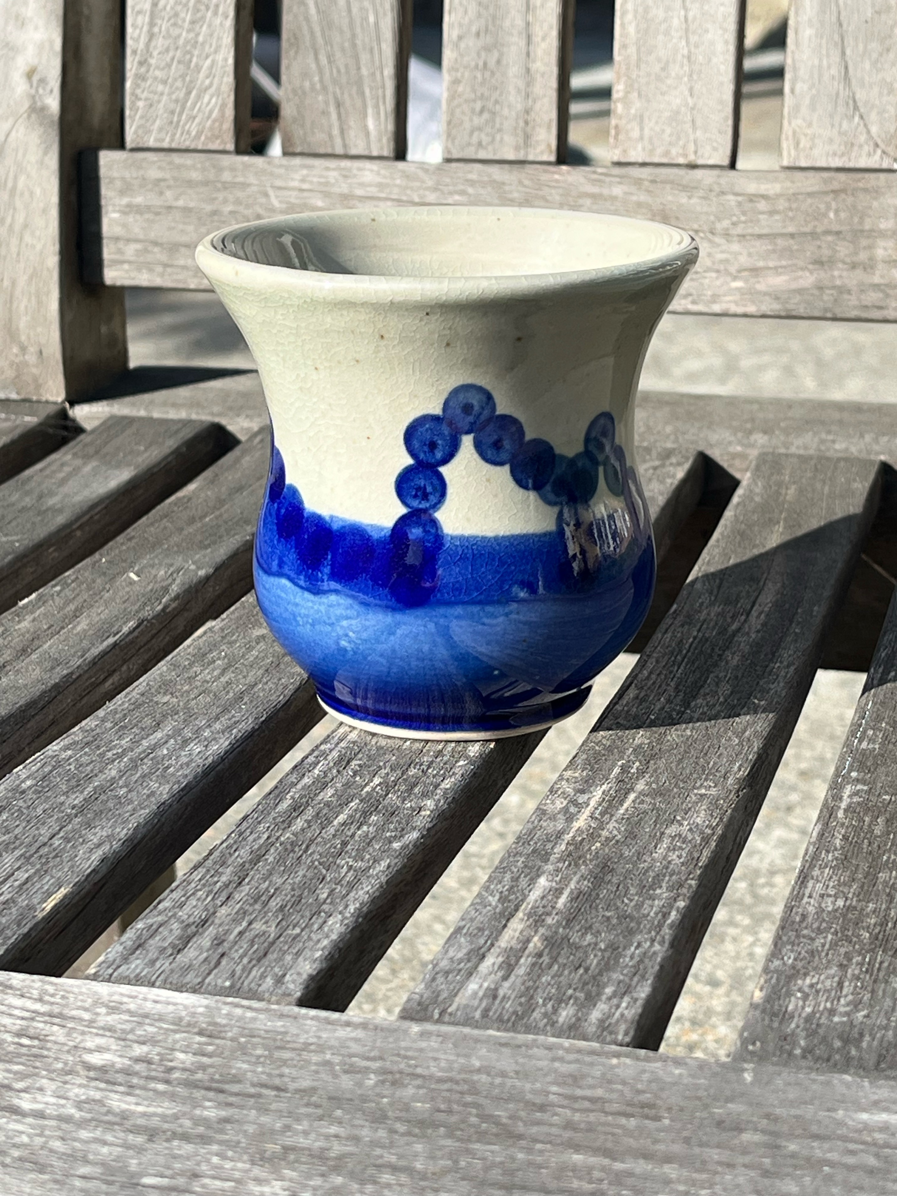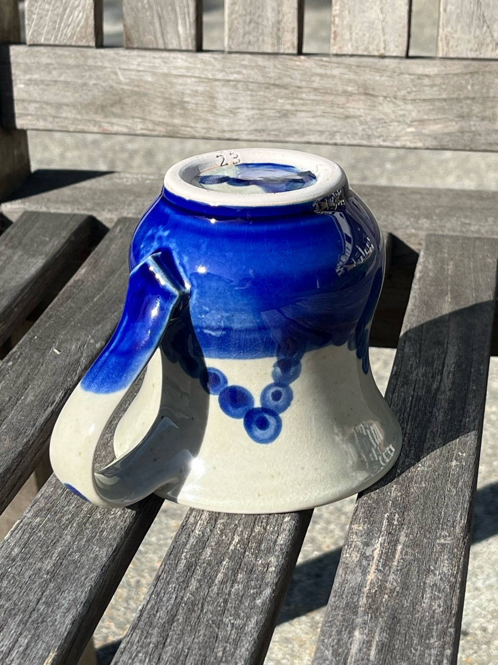 Sapphire Blue Mason (6389) stain Sponged Outside (Used mason with water, forgot about the celadon mixture. At least I think that’s the case.)